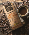 - 60% Cocoa with Colombian Coffee: Dark chocolate blended with roasted Colombian coffee beans for a smooth base and a light crunch. The coffee adds aroma and a gentle bitterness.
